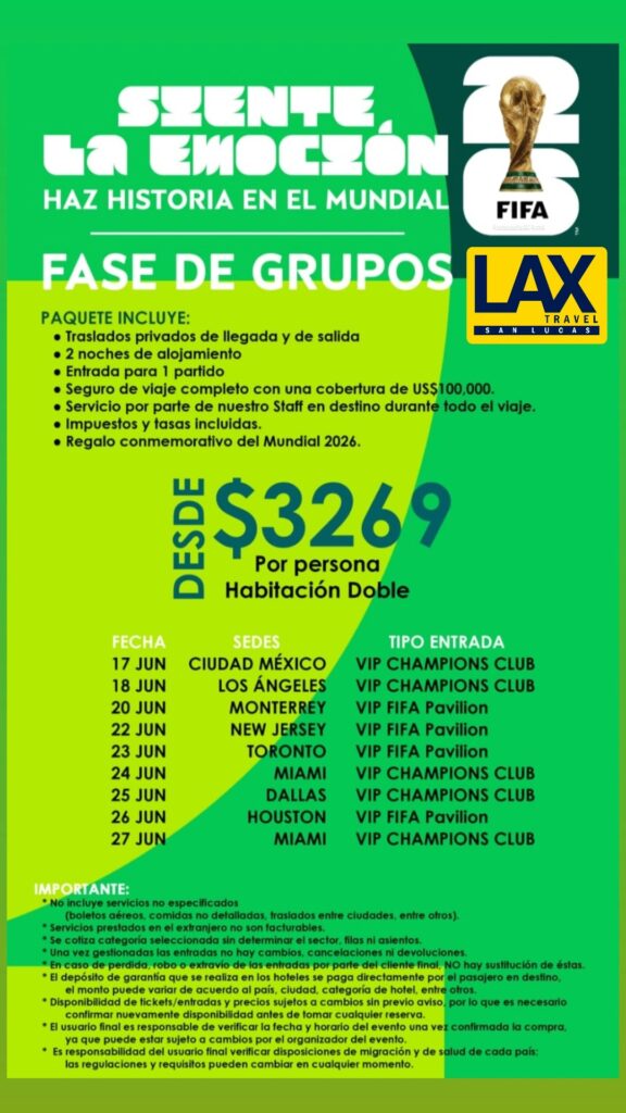 Vive la emoción del Mundial 2026 con paquetes exclusivos que incluyen hospedaje, entradas VIP y beneficios únicos. ¡Haz historia y disfruta la pasión del fútbol en vivo!